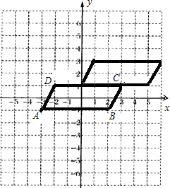 如图,描出A(-3,-1)、B(2,-1)、C(3,1)、D(-2,1)四个点,线段AB、CD有什么关系?顺次连接A、B、C、D四点组成的密闭图形是什么图形?并将这个图形向右平移3个单位长度,再向上平移2个单位长度,画出平移后的图形.