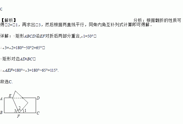 如图,把长方形ABCD沿EF对折,若∠1=50°,则∠AEF的度数为( )
