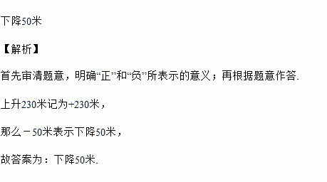 如果上升230米记为+230米,那么-50米表示 ___________ .