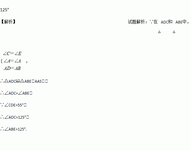 如图,AD=AB,∠C=∠E,∠CDE=55,则∠ABE=______.