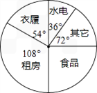 分析:(1)根据衣履上花费432元及其所占的圆心角的度数可得出总花销,再根据月租所占的圆心角的度数可得出月租花费.