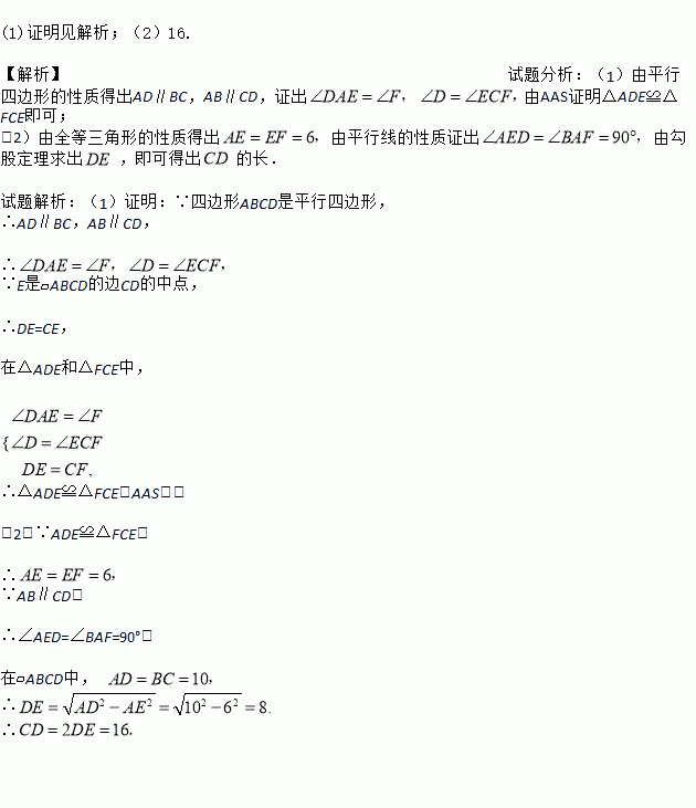 (1)求证:△ADE≌△FCE.