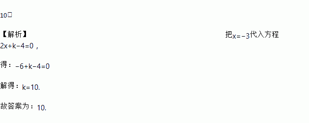 如果关于x的方程2x+k﹣4=0的解是x=﹣3,那么k的值是_____.