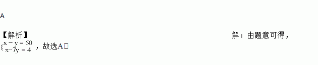 “珍爱生命,拒绝毒品”,学校举行的2017年禁毒知识竞赛共有60道题,曾浩同学答对了x道题,答错了y道题(不答视为答错),且答对题数比答错题数的7倍还多4道,那么下面列出的方程组中正确的是( )