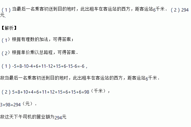 (1)当最后一名乘客初送到目的地时,此出租车在客运站的什么方向,距客运站多少千米.