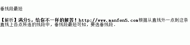 如图所示,在铁路旁边有一李庄,现要建一火车站,为了使李庄人乘火车最方便( 即距离最近 ),请你在铁路旁选一点来建火车站( 位置已选好 ),说明理由: .