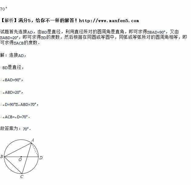 如图,点A、B、C、D分别是⊙O上四点,∠ABD=20°,BD是直径,则∠ACB=______.
