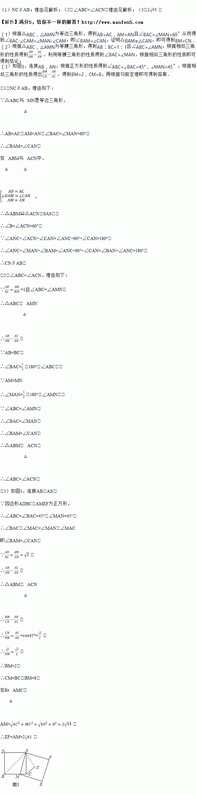 如图③,在正方形ADBC中,AD=AC,点M为BC边上异于B、C的一点,以AM为边作正方形AMEF,点N为正方形AMEF的中点,连接CN,若BC=10,CN=