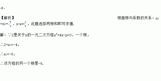已知2是关于x的一元二次方程x2+4x﹣p=0的一个根,则该方程的另一个根是 .