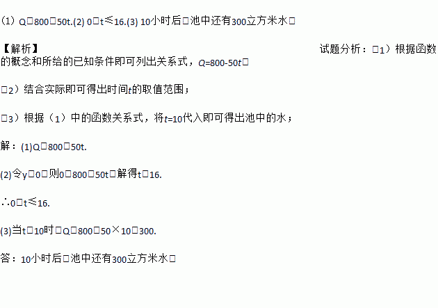 (3)10小时后,池中还有多少水?