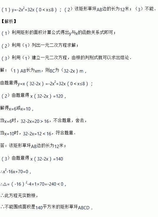 如果所围成的矩形草坪面积为![]()