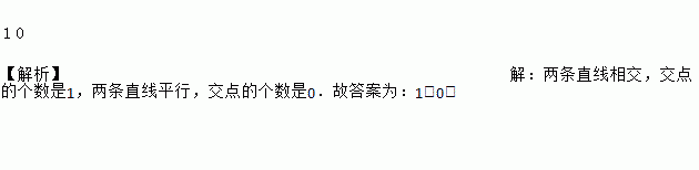 两条直线相交,交点的个数是________ ,两条直线平行,交点的个数是________ .