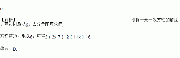 C. 3(3x﹣7)﹣2(1﹣x)=1 D. 3(3x﹣7)﹣2(1+x)=6