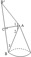 解:将圆锥侧面沿AB剪开展平,连BB′,则BB′就是所求绳子长.