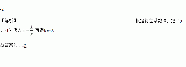 反比例函数的图象经过(2,-1),则的值为_______________.