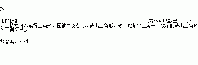 用一个平面去截长方体、三棱柱、圆锥和球,不能截出三角形的几何体是_______.