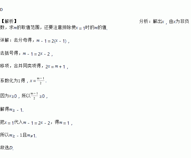 若关于x的分式方程=2的解为非负数,则m的取值范围是