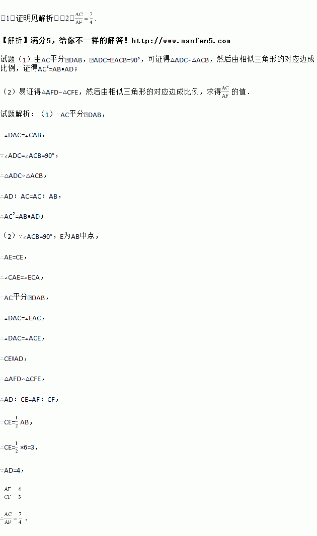 如图,四边形ABCD中,AC平分∠DAB,∠ADC=∠ACB=90°,E为AB的中点,