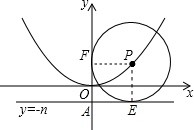 分析:设P(m,am2).如图,连接PF.设⊙P与直线y=-n相切于点E,连接PE.根据题意知PE、PF是⊙P的半径,所以利用两点间的距离公式得到