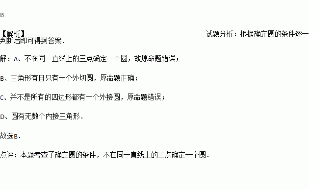 A. 三点确定一个圆 B. 三角形有且只有一个外接圆