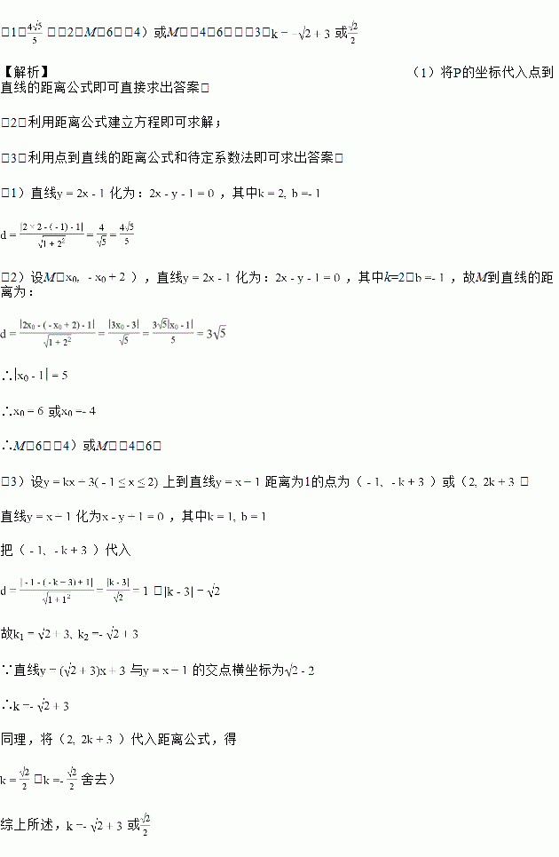 (1)点P(2,-1)到直线的距离;![]()