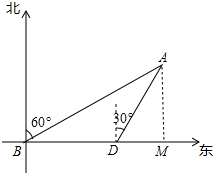 ∵∠ABD=30°,∠ADM=60°,∠ADM=∠ABD+∠BAD,