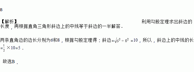 Rt△ABC中,两条直角边分别为6和8,则斜边上的中线长( )