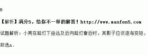 如图,晚上小亮在路灯下散步,他从处向着路灯灯柱方向径直走到处,这一过程中他在该路灯灯光下的影子( )