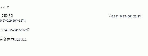 22 12 【解析】∵0.37°=0.37×60′=22.2′,0.2′=0.2×60″=12″, ∴34.37°=34°22′12″。 故答案为:22,12.