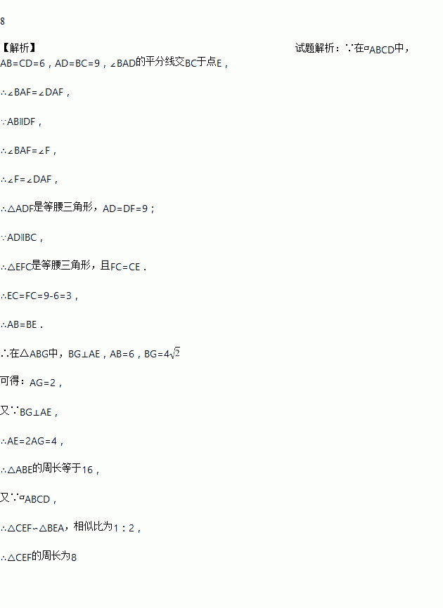 如图,在平行四边形ABCD中,AB=6,AD=9,∠BAD的平分线交BC于E,交DC的延长线于F,BG⊥AE于G,BG=