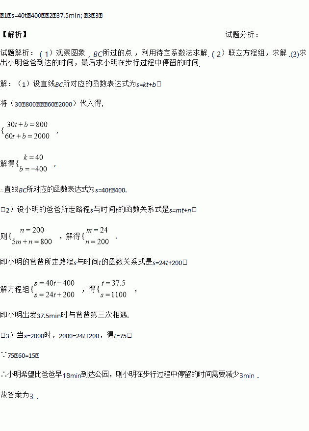 (3)在速度都不变的情况下,小明希望比爸爸早18分钟到达公园,则小明在步行过程中停留的时间需减少 分钟.