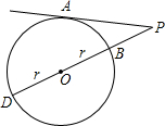 分析:设圆O半径为r,PA切⊙O于点A,利用切割线定理可得PA2=BP•PD,列方程62=4×(4+2r)解方程即可求解.