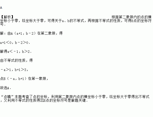 若点A(a+1,b﹣2)在第二象限,则点B(﹣a,b+1)在( )