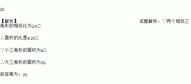 已知两个相似三角形的相似比为2︰5,其中较小的三角形面积是,那么另一个三角形的面积为 .