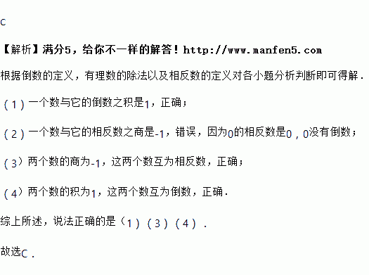 两个数的商为,这两个数互为相反数;两个数的积为,这两个数互为倒数.