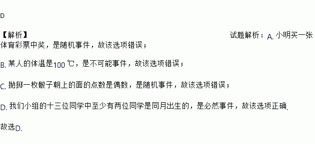 D. 我们小组的十三位同学中至少有两位同学是同月出生的
