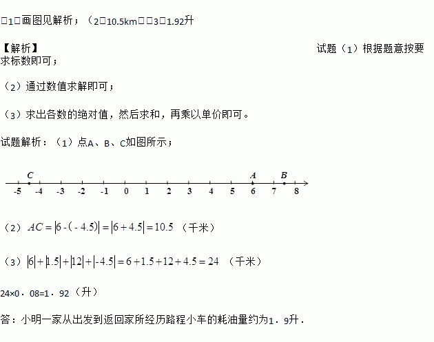 (3)若小轿车每千米耗油0.08升,求小明一家从出发到返回家所经历路程小车的耗油量。