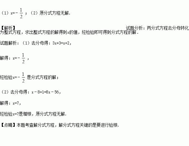 解方程:(1) ; (2)=8.