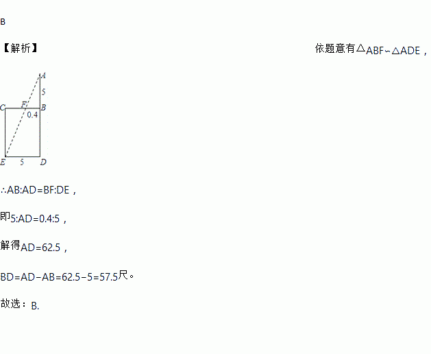 A. 1.25尺 B. 57.5尺 C. 6.25尺 D. 56.5尺