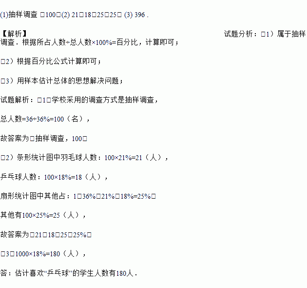 (2)补全统计图中的数据:羽毛球 人、乒乓球 人、其他 人、其他 ﹪;