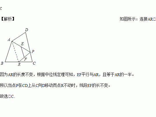 如图,已知四边形ABCD中,R、P分别是BC、CD上的点,E、F分别是AP、RP的中点,当点P在CD上从C向D移动而点R不动时,那么下列结论成立的是