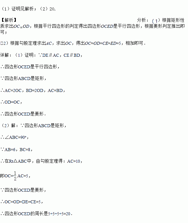 (2)若AB=6,BC=8,求四边形OCED的周长.