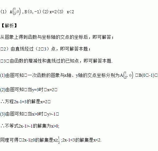 (3)分别写出不等式2x-1>-1,2x-1≥0,2x-1<3的解集.