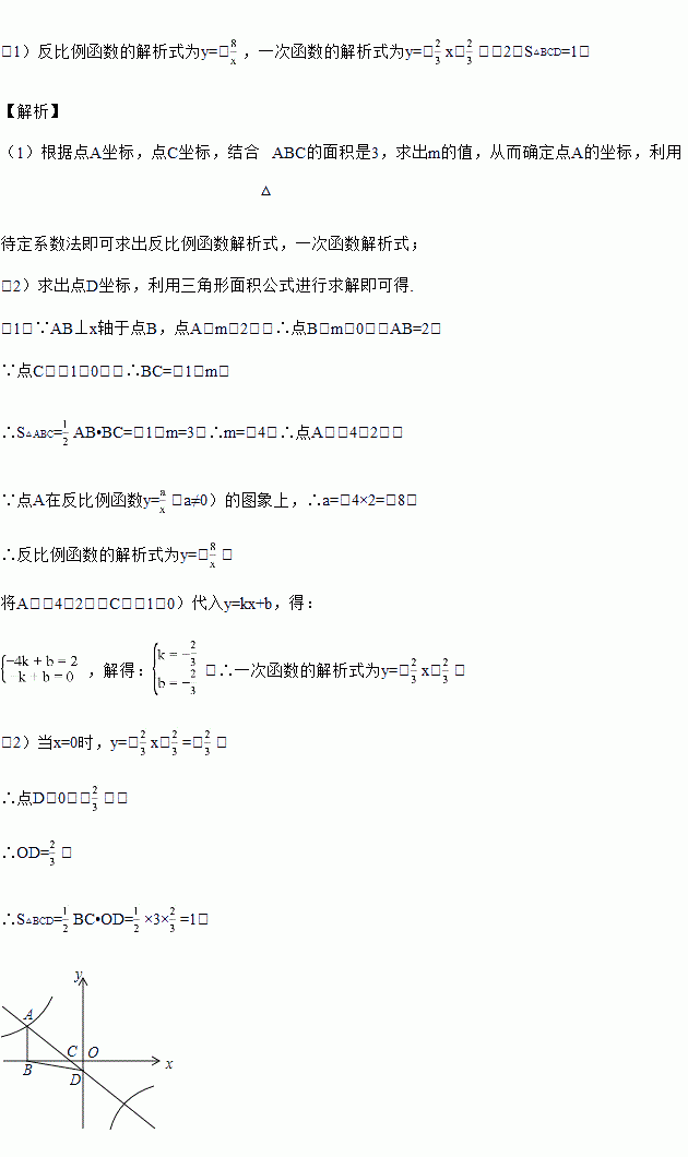 (a≠0)的图象在第二象限交于点A(m,2).与x轴交于点C(﹣1,0).过点A作AB⊥x轴于点B,△ABC的面积是3.