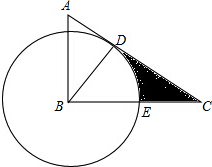 (2)在你按(1)中要求所作的图中,若AB=2,∠A=60°,将⊙B与线段CD,CE所围成的部分涂上阴影,并求阴影部分的面积.