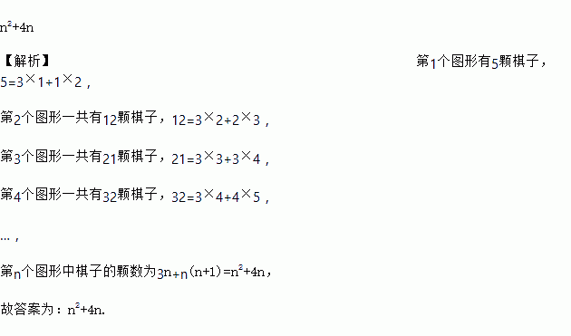 下列图形都死由同样大小的棋子按一定的规律组成,其中第1个图形有5颗棋子,第2个图形一共有12颗棋子,第3个图形一共有21颗棋子,第4个图形一共有32颗棋子,…,则第n个图形中棋子的颗数为________.