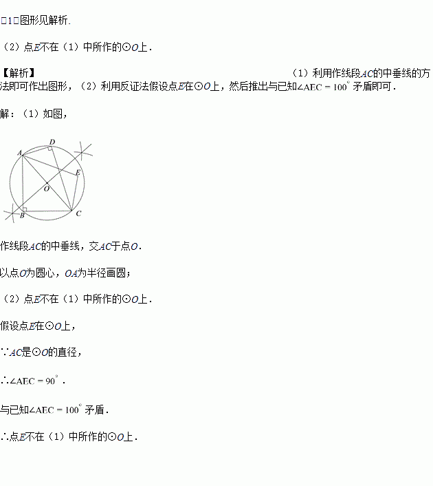 (1)利用直尺和圆规画出⊙O,使得A、B、C、D四个点都在⊙O上;