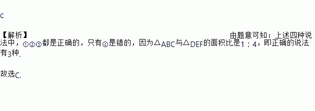 如图,将△DEF缩小为原来的一半,操作方法如下:任意取一点P,连结DP,EP,FP,并取它们的中点A,B,C,连结AB,BC,CA,得到△ABC,则下列说法:①△ABC与△DEF是位似图形;②△ABC与△DEF是相似图形;③△ABC与△DEF的周长比是1∶2;④△ABC与△DEF的面积比是1∶2.其中正确的有( )