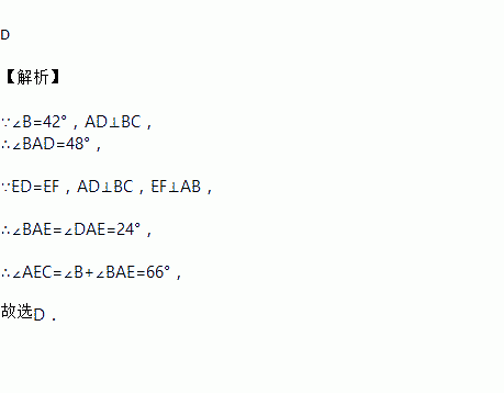 如图,在△ABC中,∠B=42°,AD⊥BC于点D,点E是BD上一点,EF⊥AB于点F,若ED=EF,则∠AEC的度数为( )