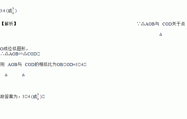 如图,将△AOB以O为位似中心,扩大得到△COD,其中B(3,0),D(4,0),则△AOB与△COD的相似比为_____.